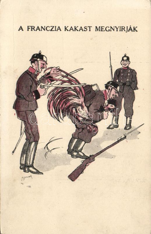 The French cock WW. I. military propaganda https://www.darabanth.com/hu/10-Nagyaukcio/10.1/Motivum-kepeslapok/Katonai-Military~2825/The-French-cock-WW-I-military-propaganda~II287628