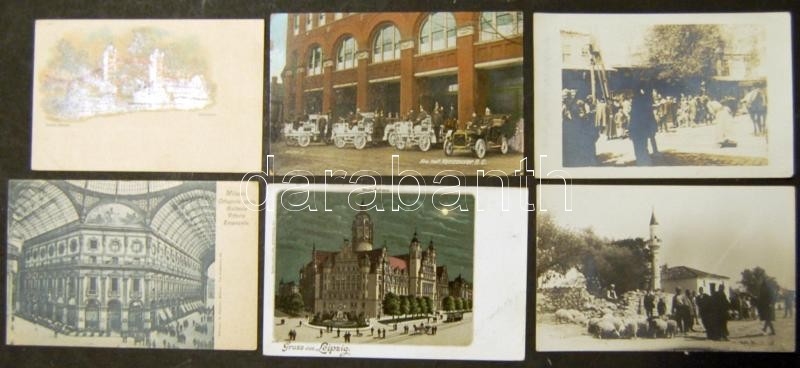 115 db régi külföldi városképes lap jobbakkal, érdekességekkel, lithokkal / 115 old foreign topographic cards with better ones, lithos and interesting cards