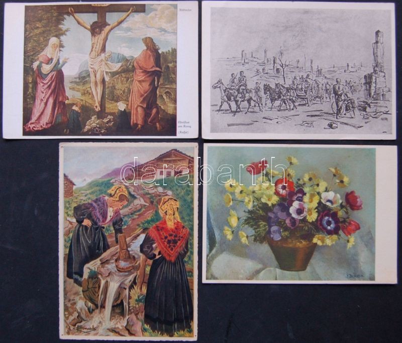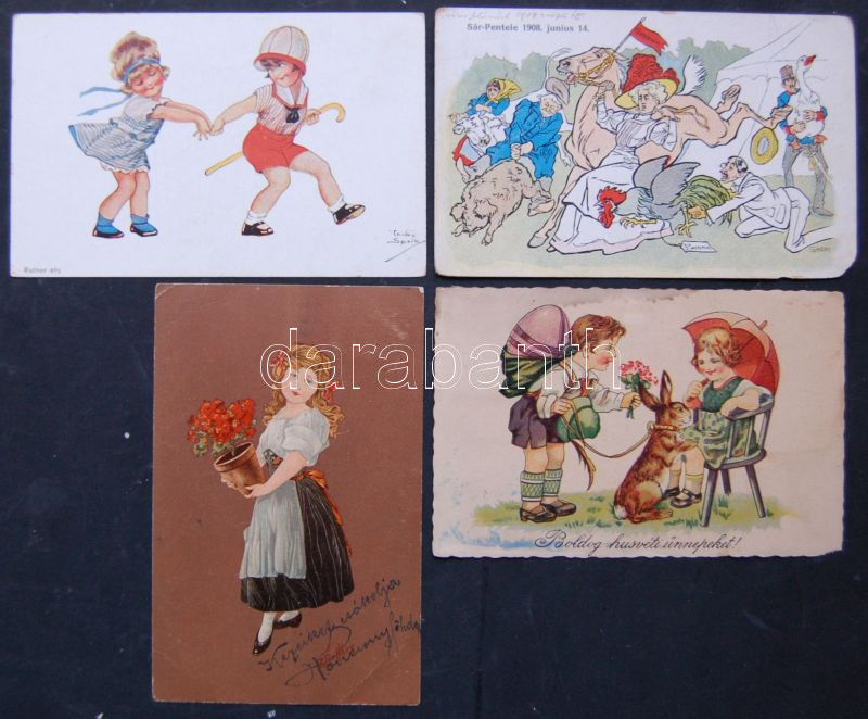 263 db régi tematikus képeslap: húsvéti, karácsonyi, újévi üdvözlők, krampusz, gyermekek (közte Chicky Spark lapok), művészlapok, kézzel rajzolt és festett lapok, stb érdekes vegyes anyag / 263 old thematic cards: Easter, Christmas, New Year, Children (Chicky Spark children cards) hand painted, artist signed, etc.