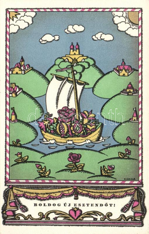 Leírás: New Year s: Kozma, Kner Izidor postcard