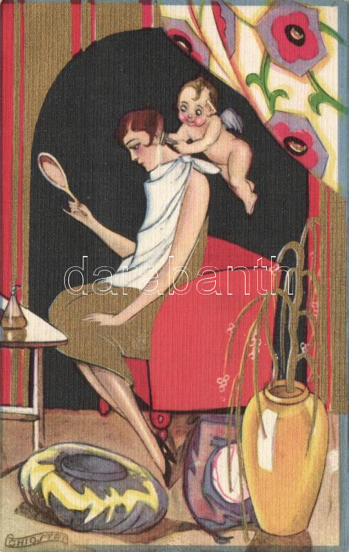 Putto angel as hairdresser s: Chiostri https://www.darabanth.com/hu/10-Nagyaukcio/10.1/Motivum-kepeslapok/Mas-muveszek-Other-Artists~2806/Putto-angel-as-hairdresser-s-Chiostri~II302964