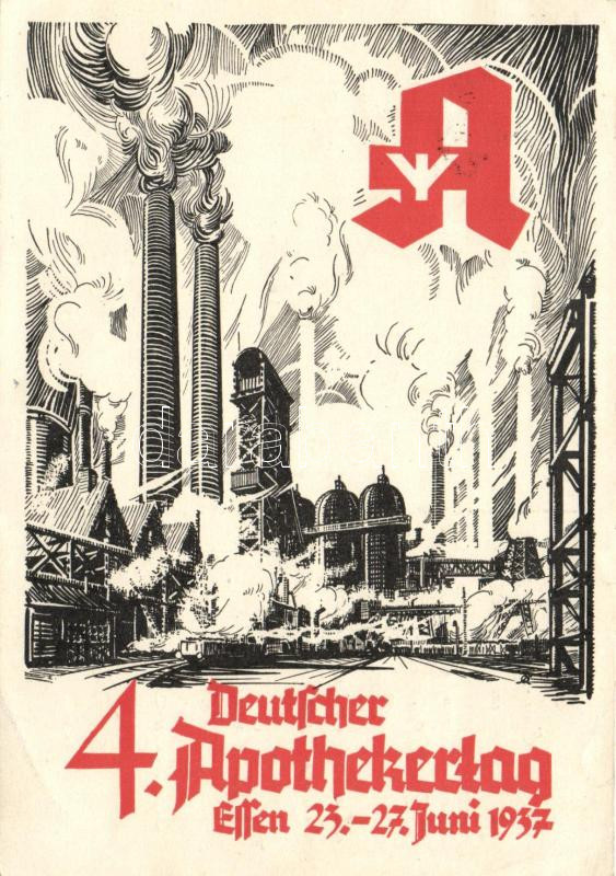 1937 German Pharmacist`s day (so Stpl) https://www.darabanth.com/hu/10-Nagyaukcio/10.1/Motivum-kepeslapok/Reklam-Commercial~2828/1937-German-Pharmacists-day-so-Stpl~II302739