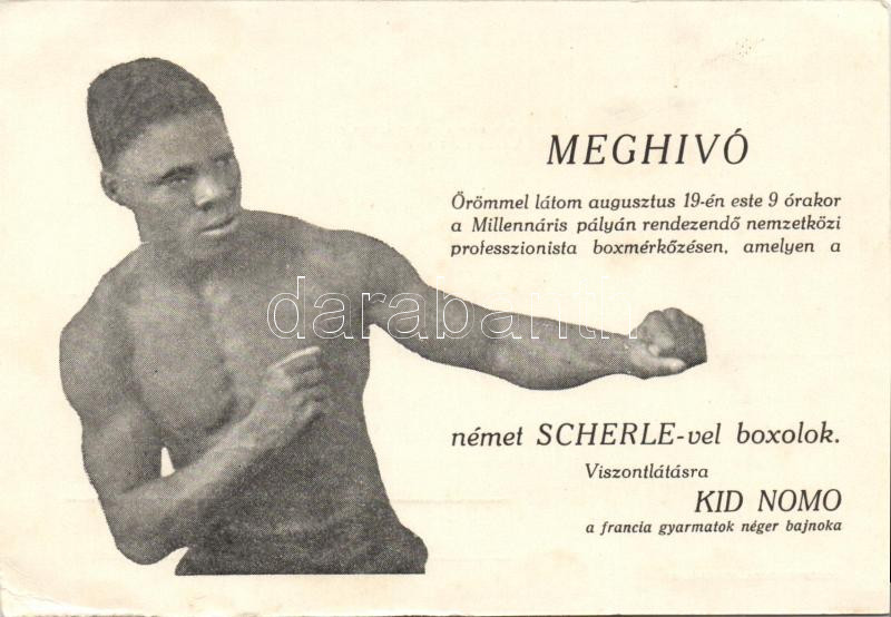 Kid Nomo French box champion vs. Scherle match in Budapest (EK) https://www.darabanth.com/hu/10-Nagyaukcio/10.1/Motivum-kepeslapok/Sport~2846/Kid-Nomo-French-box-champion-vs-Scherle-match-in-Budapest-EK~II302371