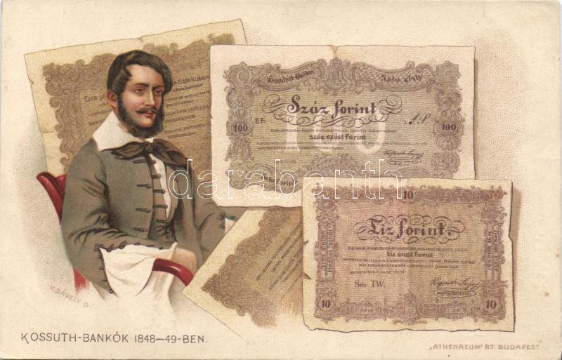 Leírás: Kossuth Lajos, Kossuth-banknotes s: K. Sávely D. Litho