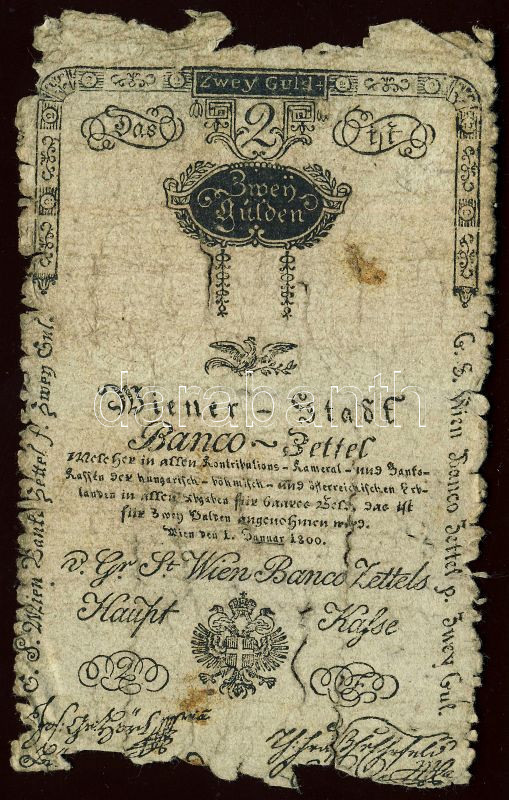 Leírás: 1800. 2G Wiener Stadt Banco Zettel T:alsó része hiányzik