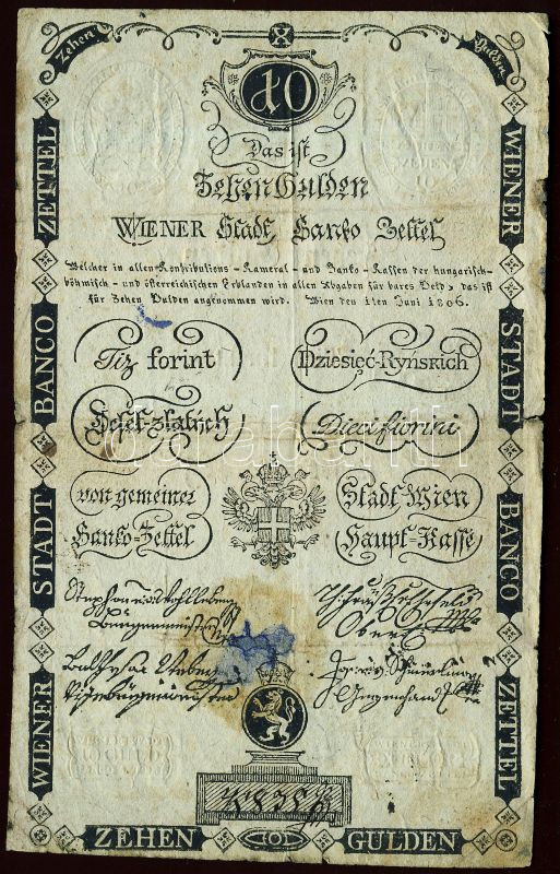 1806. 10G Wiener Stadt Banco Zettel T:III- foltos https://www.darabanth.com/hu/100-Gyorsarveres/100.0/Numizmatika/Osztrakmagyar-magyar-es-magyar-vonatkozasu-bankjegyek-Austrian-Hungarian-Hungarian-and~100021/1806-10G-Wiener-Stadt-Banco-Zettel-TIII-foltos~II235429