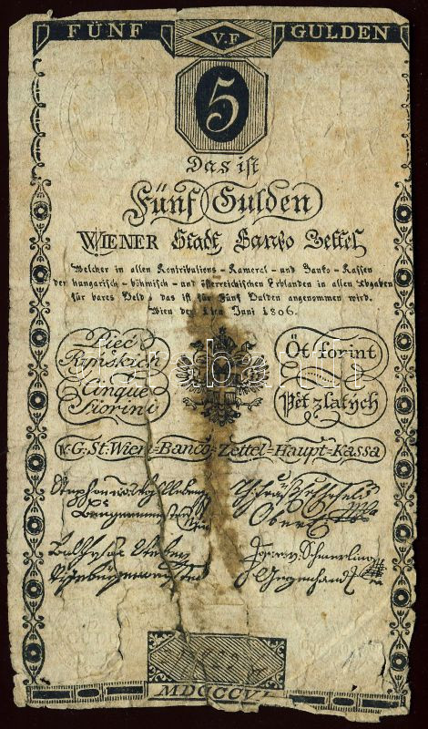 1806. 5G Wiener Stadt Banco Zettel T:IV https://www.darabanth.com/hu/100-Gyorsarveres/100.0/Numizmatika/Osztrakmagyar-magyar-es-magyar-vonatkozasu-bankjegyek-Austrian-Hungarian-Hungarian-and~100021/1806-5G-Wiener-Stadt-Banco-Zettel-TIV~II235422