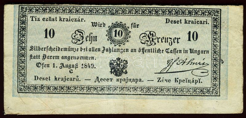 1849. 10 ezüst kr "Almássy" T:II- https://www.darabanth.com/hu/100-Gyorsarveres/100.0/Numizmatika/Osztrakmagyar-magyar-es-magyar-vonatkozasu-bankjegyek-Austrian-Hungarian-Hungarian-and~100021/1849-10-ezust-kr-Almassy-TII-~II235455