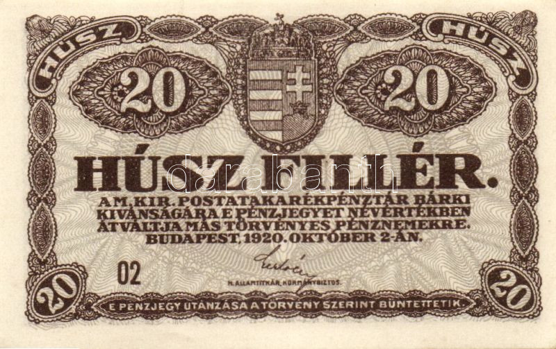 https://www.darabanth.com/hu/100-Gyorsarveres/100.0/Numizmatika/Osztrakmagyar-magyar-es-magyar-vonatkozasu-bankjegyek-Austrian-Hungarian-Hungarian-and~100021/1920-20f3x-TI~II234984
