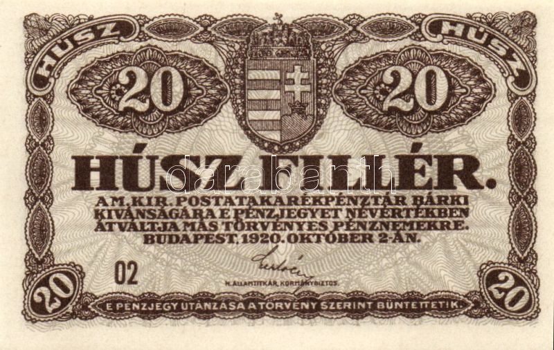 https://www.darabanth.com/hu/100-Gyorsarveres/100.0/Numizmatika/Osztrakmagyar-magyar-es-magyar-vonatkozasu-bankjegyek-Austrian-Hungarian-Hungarian-and~100021/1920-20f3x-TI~II234986