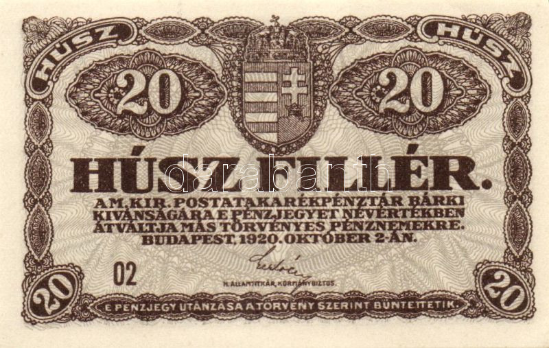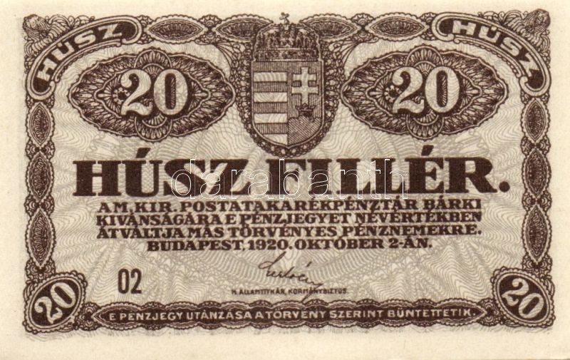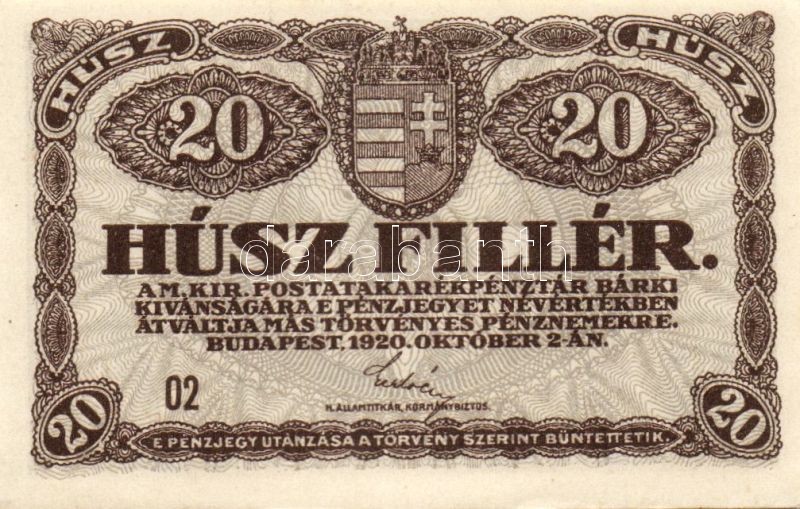 https://www.darabanth.com/hu/100-Gyorsarveres/100.0/Numizmatika/Osztrakmagyar-magyar-es-magyar-vonatkozasu-bankjegyek-Austrian-Hungarian-Hungarian-and~100021/1920-20f3x-TI~II234988