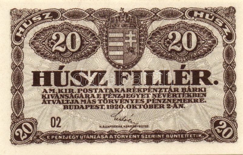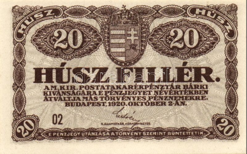 https://www.darabanth.com/hu/100-Gyorsarveres/100.0/Numizmatika/Osztrakmagyar-magyar-es-magyar-vonatkozasu-bankjegyek-Austrian-Hungarian-Hungarian-and~100021/1920-20f3x-TI~II234991