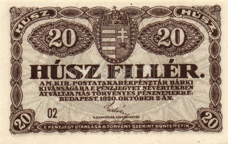 https://www.darabanth.com/hu/100-Gyorsarveres/100.0/Numizmatika/Osztrakmagyar-magyar-es-magyar-vonatkozasu-bankjegyek-Austrian-Hungarian-Hungarian-and~100021/1920-20f3x-TI~II234993