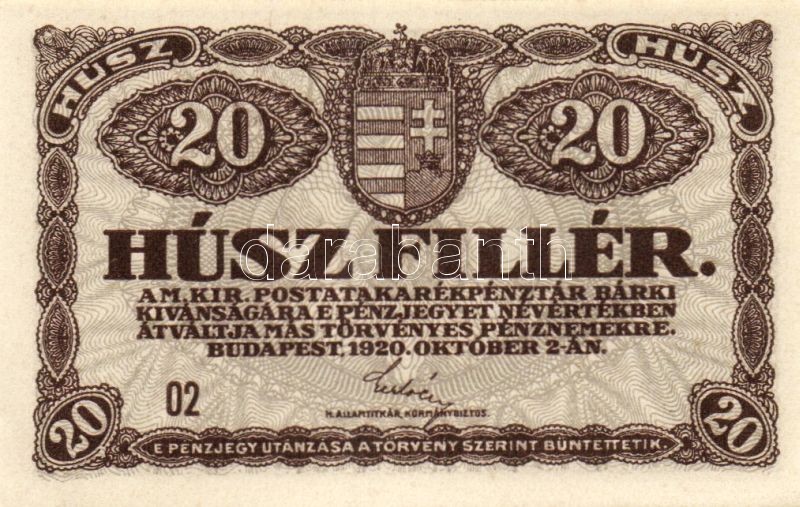 https://www.darabanth.com/hu/100-Gyorsarveres/100.0/Numizmatika/Osztrakmagyar-magyar-es-magyar-vonatkozasu-bankjegyek-Austrian-Hungarian-Hungarian-and~100021/1920-20f3x-TI~II234994