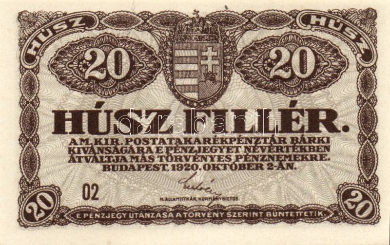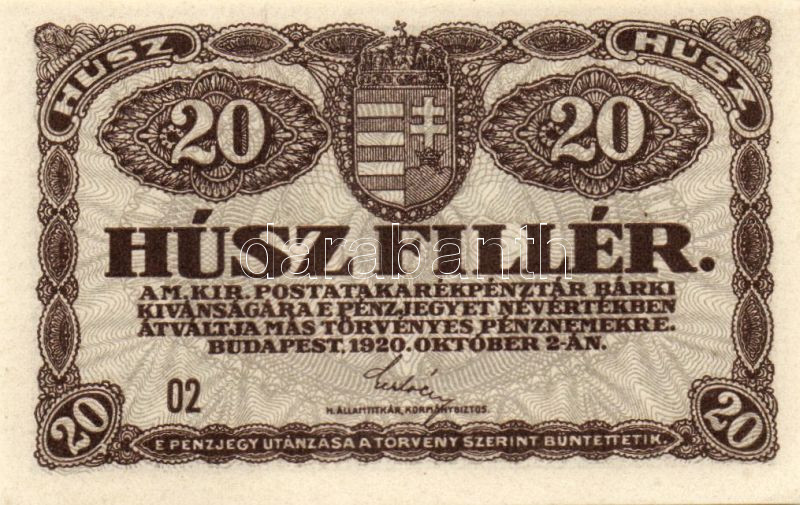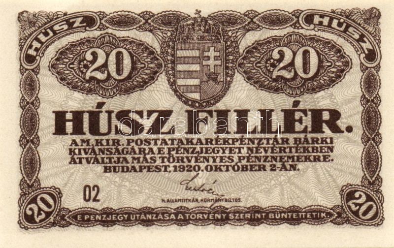 https://www.darabanth.com/hu/100-Gyorsarveres/100.0/Numizmatika/Osztrakmagyar-magyar-es-magyar-vonatkozasu-bankjegyek-Austrian-Hungarian-Hungarian-and~100021/1920-20f4x-TI~II234996