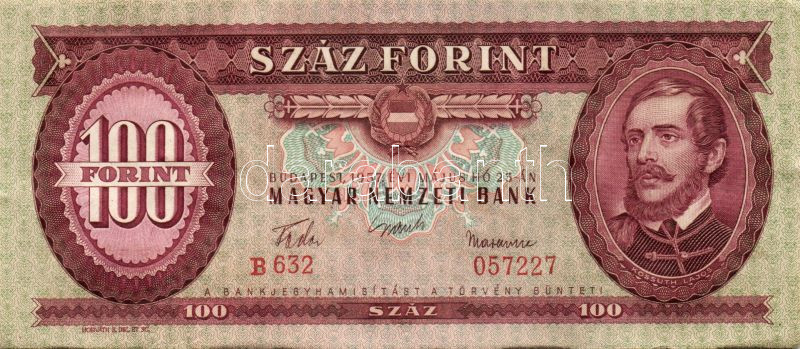https://www.darabanth.com/hu/100-Gyorsarveres/100.0/Numizmatika/Osztrakmagyar-magyar-es-magyar-vonatkozasu-bankjegyek-Austrian-Hungarian-Hungarian-and~100021/1957-100Ft-TI-~II237596