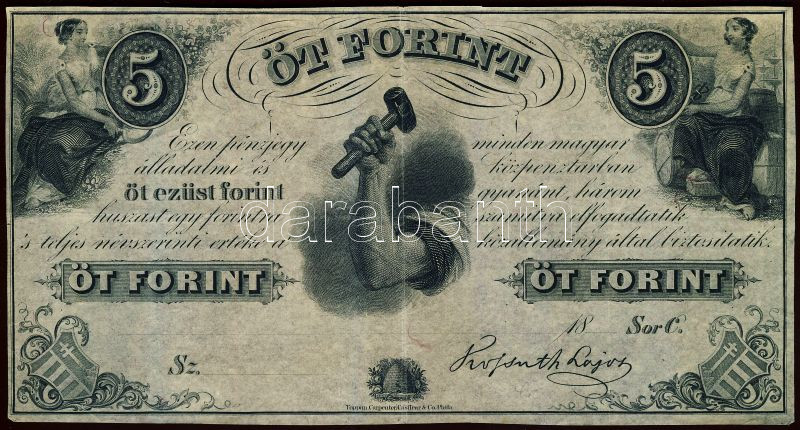 Emigrációs "Kossuth-bankó" 18.. 5Ft T:II https://www.darabanth.com/hu/100-Gyorsarveres/100.0/Numizmatika/Osztrakmagyar-magyar-es-magyar-vonatkozasu-bankjegyek-Austrian-Hungarian-Hungarian-and~100021/Emigracios-Kossuth-banko-18-5Ft-TII~II235430