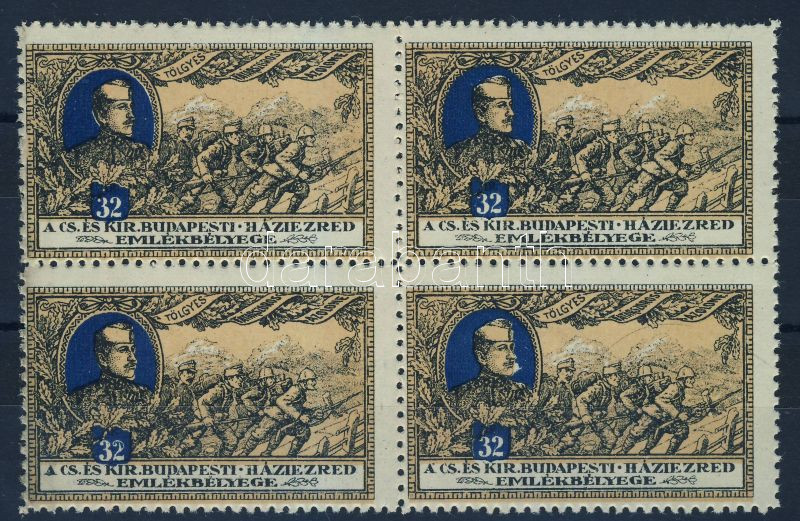 1915 32-es baka vagyok én! Ezredbélyeg négyestömb https://www.darabanth.com/hu/101-Gyorsarveres/101.0/Festmeny-mutargy-papirregiseg-egyeb/Parafilatelia-Paraphilately~299/1915-32-es-baka-vagyok-en-Ezredbelyeg-negyestomb~II238754