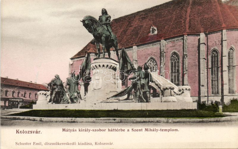 Kolozsvár Matthias statue and church https://www.darabanth.com/hu/101-Gyorsarveres/101.0/Kepeslapok/Erdely-Transylvania~317/Kolozsvar-Matthias-statue-and-church~II236367