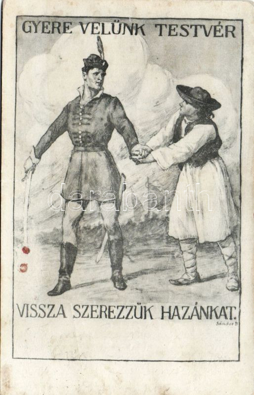 Irredenta (fl) s:Sándor B. https://www.darabanth.com/hu/101-Gyorsarveres/101.0/Kepeslapok/Propaganda~276/Irredenta-fl-sSandor-B~II234897