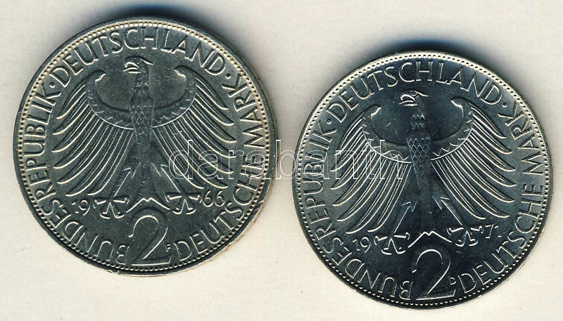 NSZK 1966+1971. 2M "Planck" (2x) T:2,3 ph. https://www.darabanth.com/hu/101-Gyorsarveres/101.0/Numizmatika/Kulfoldi-fem-es-ezustpenzek-a-kozepkortol-napjainkig~30019/NSZK-1966plus1971-2M-Planck-2x-T2-3-ph~II239906