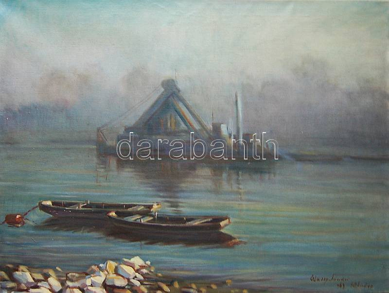 Olaszi Sándor (1902-): Kotróhajó Szentendrénél olaj-vászon, szignált 6... https://www.darabanth.com/hu/102-Gyorsarveres/102.0/Festmeny-mutargy-papirregiseg-egyeb/Festmenyek-es-grafikak-Paintings-and-graphics~319/Olaszi-Sandor-1902-Kotrohajo-Szentendrenel-olaj-vaszon-szignalt-60x90-cm~II241901