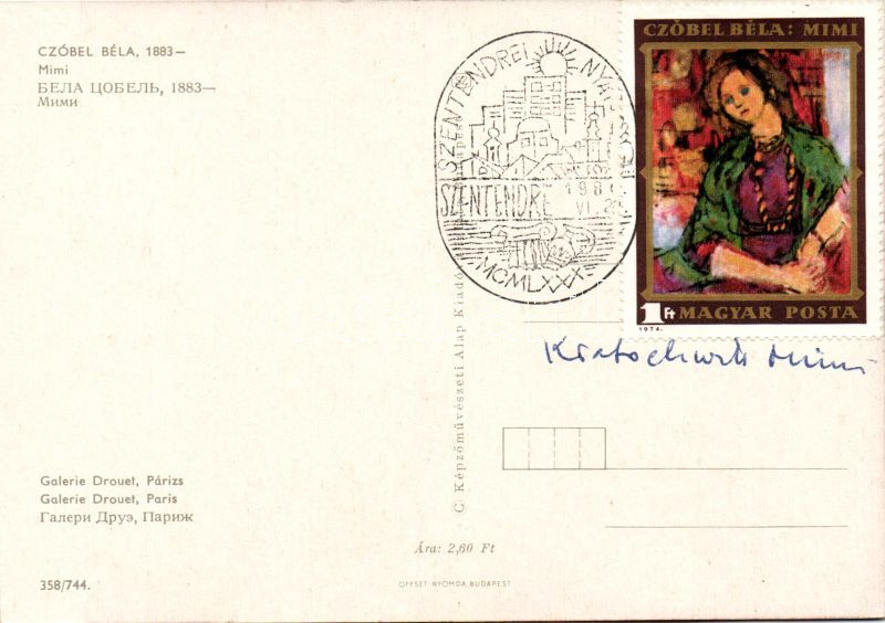 Kratochwill Mimi aláírása képeslapon https://www.darabanth.com/hu/103-Gyorsarveres/103.0/Festmeny-mutargy-papirregiseg-egyeb/Alairas-Autograph~100135/Kratochwill-Mimi-alairasa-kepeslapon~II246535