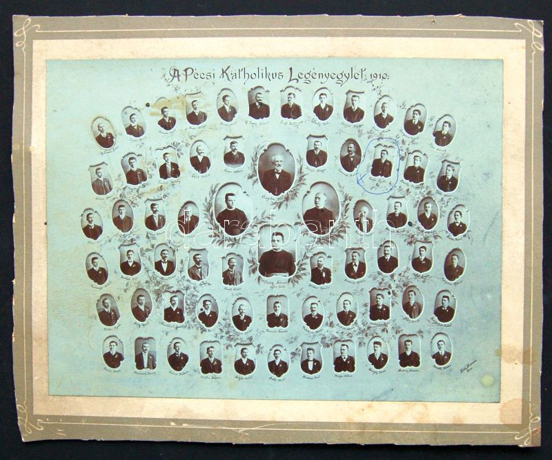 Leírás: 1910 Pécsi Katholikus Legényegylet tablóképe 29x23 cm