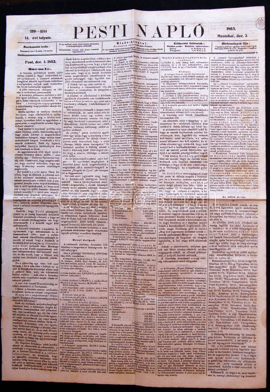 1863 A Pesti Napló újság 45kr-os szignettával https://www.darabanth.com/hu/103-Gyorsarveres/103.0/Festmeny-mutargy-papirregiseg-egyeb/Nyomtatvanyok-Printed-materials~100142/1863-A-Pesti-Naplo-ujsag-45kr-os-szignettaval~II249497