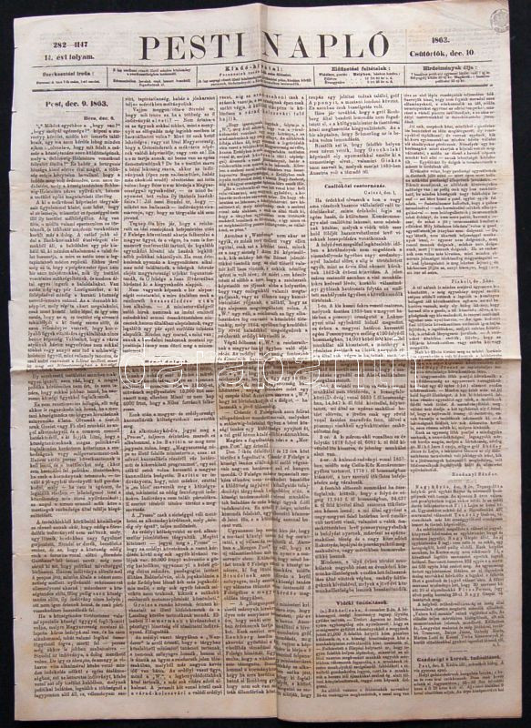 1863 A Pesti Napló újság 45kr-os szignettával https://www.darabanth.com/hu/103-Gyorsarveres/103.0/Festmeny-mutargy-papirregiseg-egyeb/Nyomtatvanyok-Printed-materials~100142/1863-A-Pesti-Naplo-ujsag-45kr-os-szignettaval~II249498