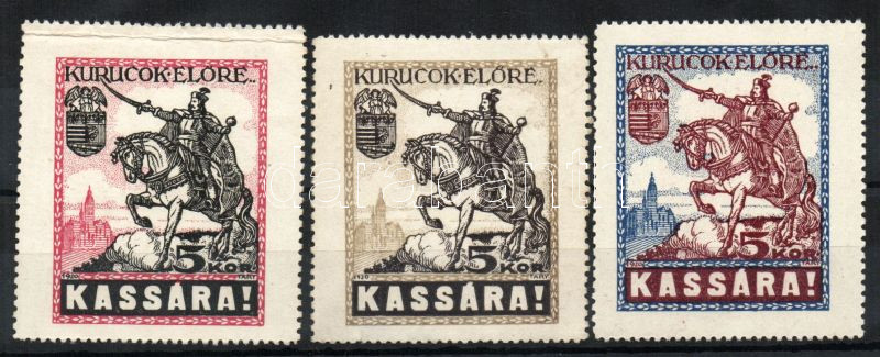 Leírás: 1921 Kurucok előre Kassára 3 db klf színű levélzáró