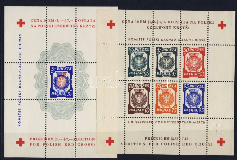 Leírás: Lengyel vöröskereszt Dachau segélybélyegzéssel kisív + blokk