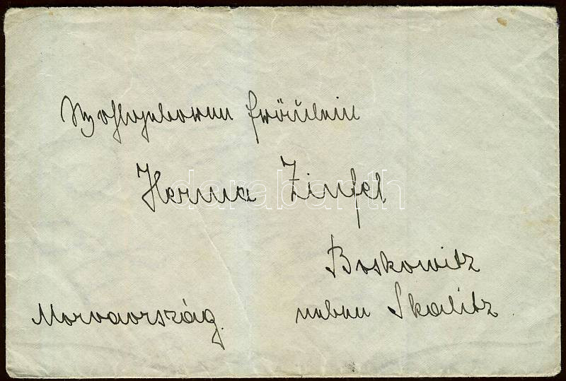 Leírás: 1910 Levél "BAJA" pályaudvari + "BAJASZABADKA" vasúti bélyegzéssel Morvaországba