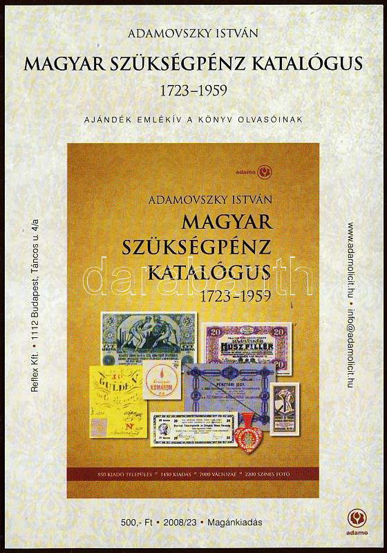 Leírás: 2008 Magyar Szükségpénz katalógus ajándék emlékív