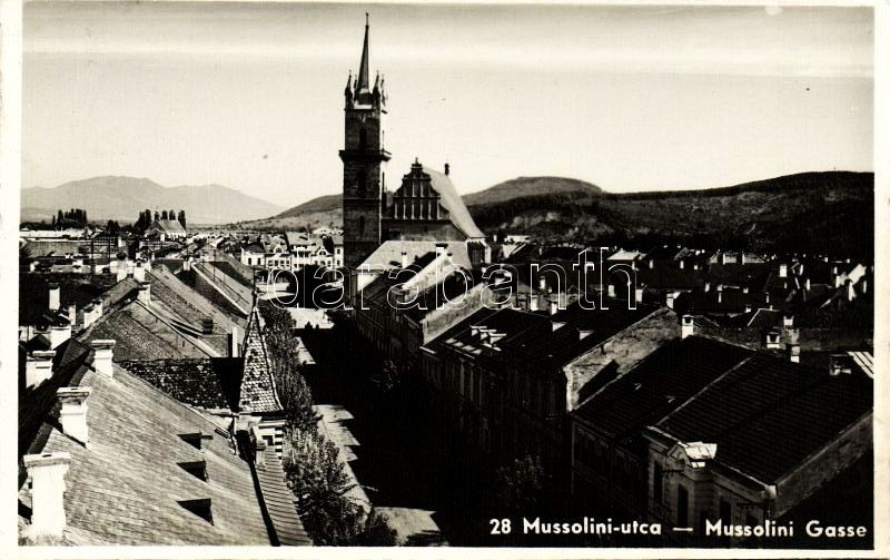 Beszterce Mussolini street photocard https://www.darabanth.com/hu/103-Gyorsarveres/103.0/Kepeslapok/Erdely-Transylvania~100148/Beszterce-Mussolini-street-photocard~II242888