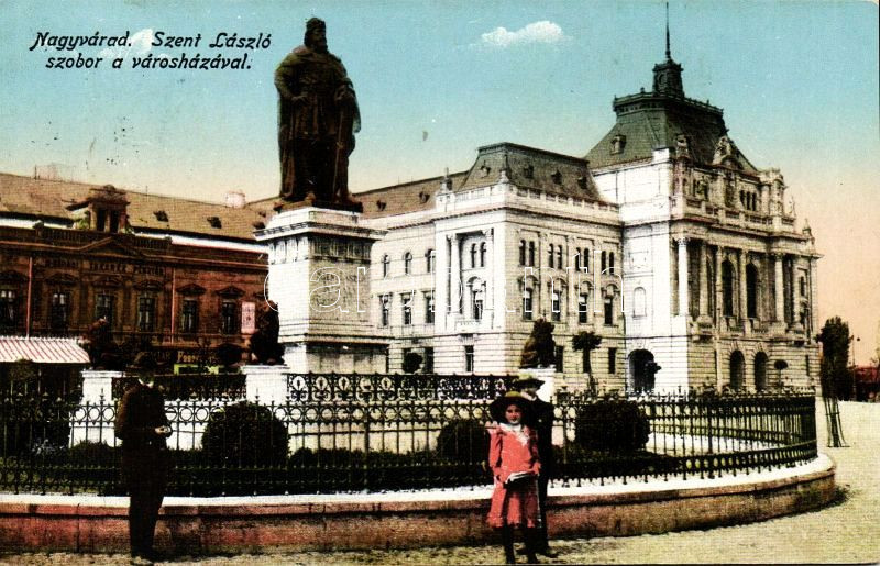 Nagyvárad statue, town hall https://www.darabanth.com/hu/103-Gyorsarveres/103.0/Kepeslapok/Erdely-Transylvania~100148/Nagyvarad-statue-town-hall~II244144