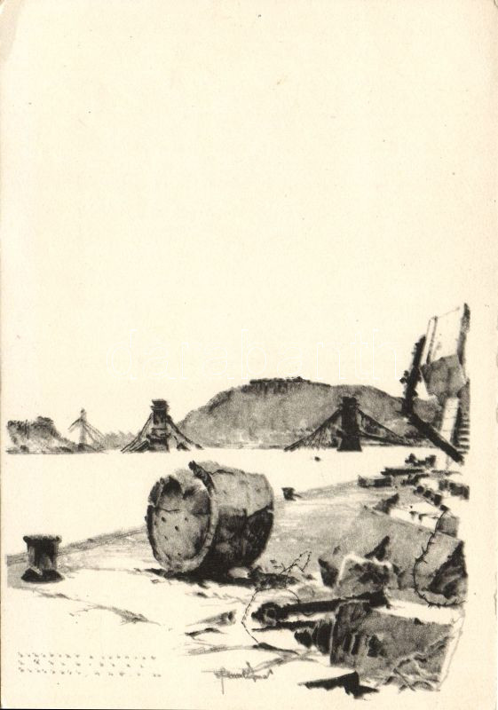 Budai Dunapart a bombázás után https://www.darabanth.com/hu/103-Gyorsarveres/103.0/Kepeslapok/Magyarorszag-Hungary~100147/Budai-Dunapart-a-bombazas-utan~II242771
