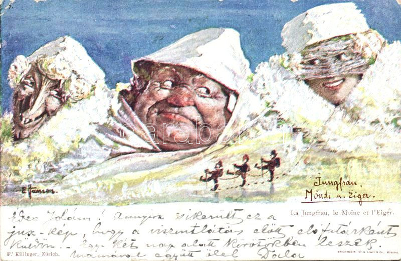 Eiger, Mönch, Jungfrau s: E Hansen https://www.darabanth.com/hu/103-Gyorsarveres/103.0/Kepeslapok/Svajc-Switzerland~100185/Eiger-Monch-Jungfrau-s-E-Hansen~II244913