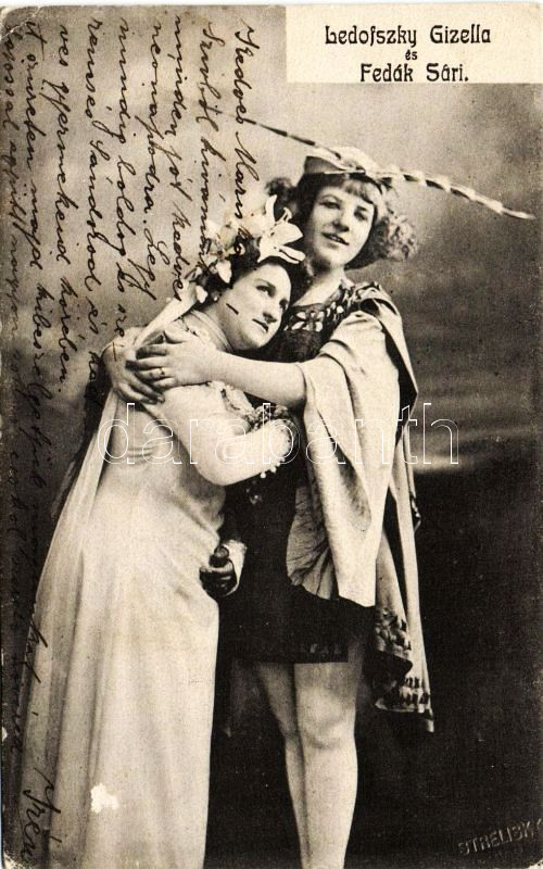 Ledofszky Gizella és Fedák Sári (EK) https://www.darabanth.com/hu/103-Gyorsarveres/103.0/Kepeslapok/Szinesz-Actor-actress~100215/Ledofszky-Gizella-es-Fedak-Sari-EK~II243906