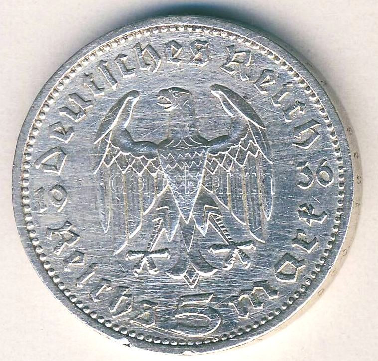 Leírás: Német 3. Birodalom 1936A 5M Ag "Hindenburg" T:3 ph.