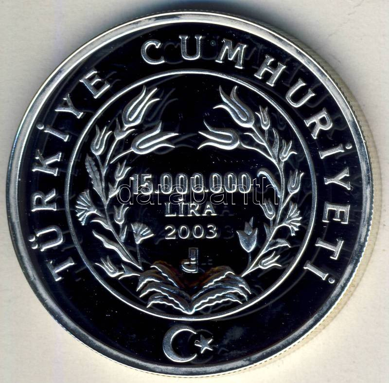 Leírás: Törökország 2003. 15.000.000 Ag "Labdarúgó VB" T:PP