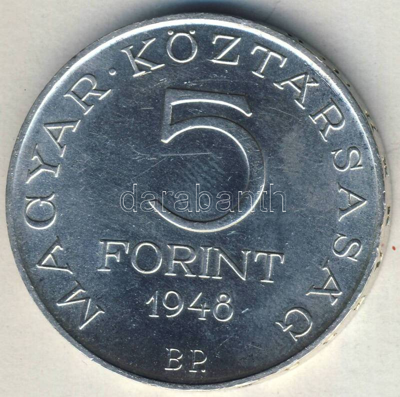 1948. 5Ft Ag "Petőfi" T:2 https://www.darabanth.com/hu/103-Gyorsarveres/103.0/Numizmatika/Magyar-es-magyar-verdejelu-fem-es-ezustpenzek-a-kozepkortol-napjainkig~40016/1948-5Ft-Ag-Petofi-T2~II247086
