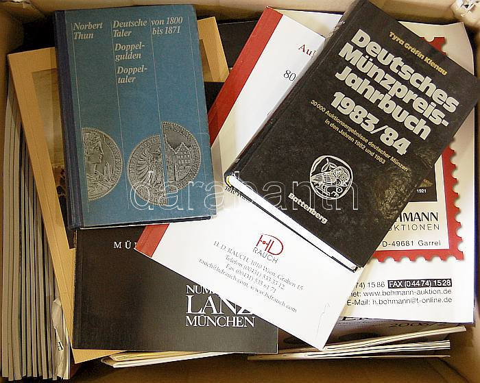 Hagyaték tétel, 67db numizmatikai szakirodalom és árverési katalógus https://www.darabanth.com/hu/103-Gyorsarveres/103.0/Numizmatika/Numizmatikai-irodalom~40002/Hagyatek-tetel-67db-numizmatikai-szakirodalom-es-arveresi-katalogus~II252644