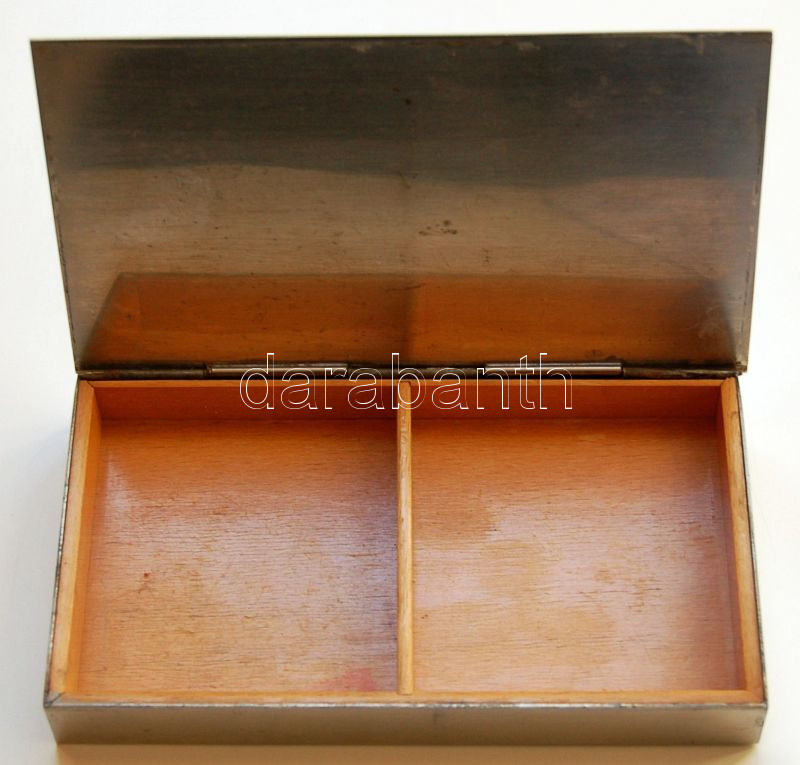 XX. század közepén készült fém asztali cigarettásdoboz (18x10 cm) https://www.darabanth.com/hu/104-Gyorsarveres/104.0/Festmeny-mutargy-papirregiseg-egyeb/Bolhapiac-Flea-market~320/XX-szazad-kozepen-keszult-fem-asztali-cigarettasdoboz-18x10-cm~II253839
