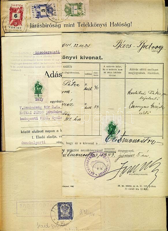 Leírás: 1922-2005 11 db hivatalos irat illetékbélyegekkel