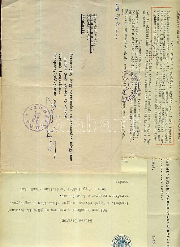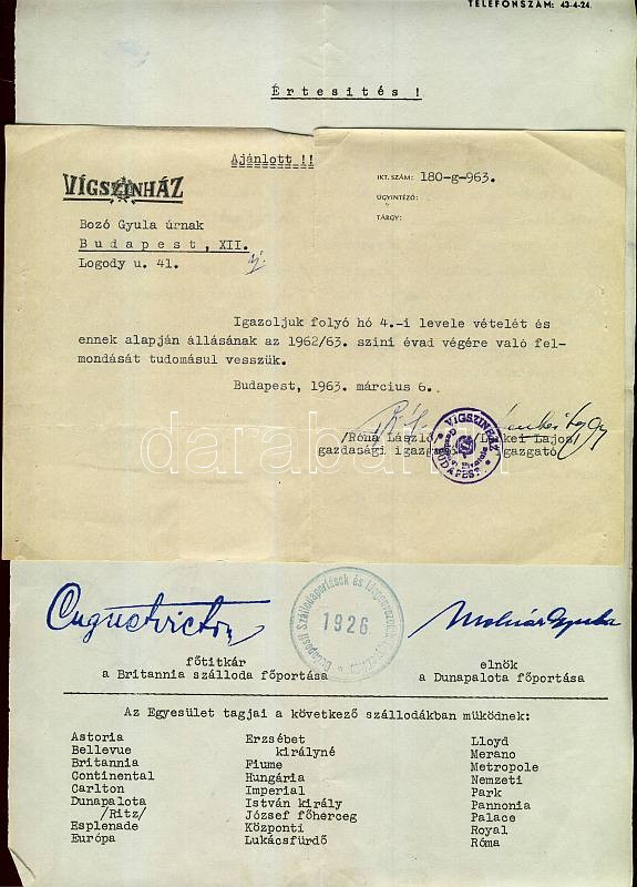 Leírás: cca 1930-1950 Bozó Gyula grafikusművész okmány hagyaték érdekes levelekkel, okmányokkal 11 db