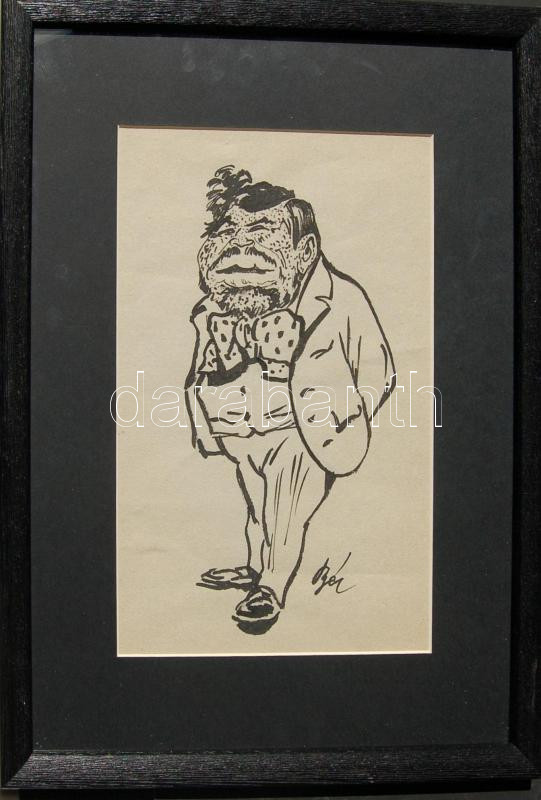 Leírás: Bér Dezső (1874-1925): Öregúr; tus-papír, szignált keretben 30x40 cm