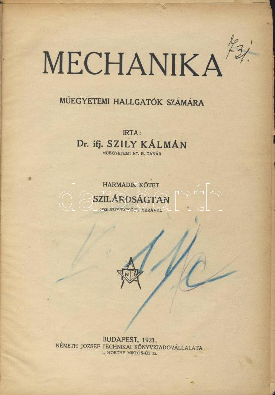 1931 Dr. Szily Kálmán: Mechanika- Szilárdságtan műegyetemi tankönyv https://www.darabanth.com/hu/107-Gyorsarveres/107.0/Festmeny-mutargy-papirregiseg-egyeb/Konyvek-es-nyomtatvanyok-Books-and-printed-materials~305/1931-Dr-Szily-Kalman-Mechanika-Szilardsagtan-muegyetemi-tankonyv~II264545