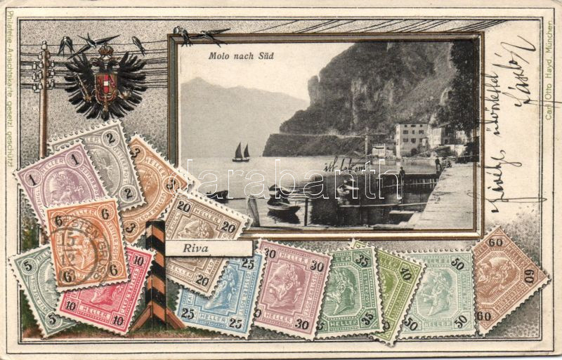 Leírás: Riva del Garda molo with a set of Austrian Monarchy stamps litho (EK)