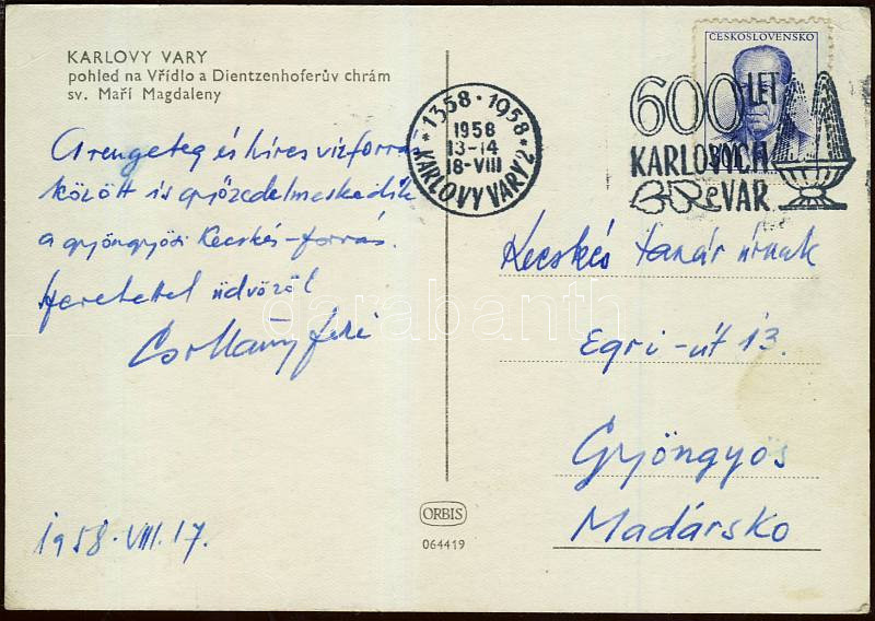 Leírás: 1958 Csollány Ferenc hírlapkiadó vezérigazgatójának aláírása fekete-fehér képeslapon